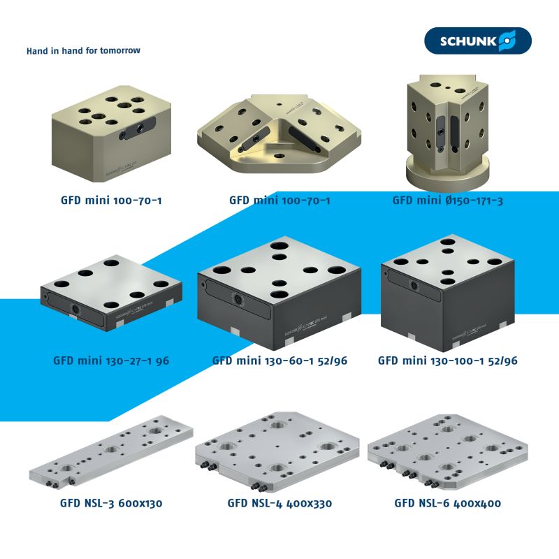 Sản phẩm nổi bật trong dòng này là SCHUNK GFD mini 130-27-1 52/96 với mã đặt hàng 1599849. Đây là một ví dụ điển hình về sự kết hợp hoàn hảo giữa độ chính xác, lực kẹp mạnh mẽ và thiết kế nhỏ gọn, đáp ứng nhu cầu khắt khe của các trung tâm gia công CNC hiện đại.
